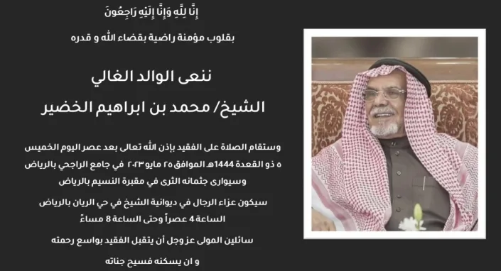 الوالد الشيخ / محمد بن ابراهيم الخضير في ذمة الله